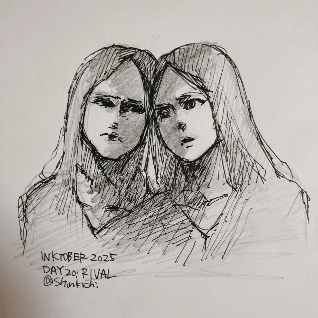 Inktober2025 投稿日時: 2025年10月31日 投稿者: 信吉 Day20: rival ライバル Day30: Vacant 空っぽ、無表情の Day31: award 賞 今年の目標は「10日に1回投稿」だったのでなんとかなりました…🏆✨👏