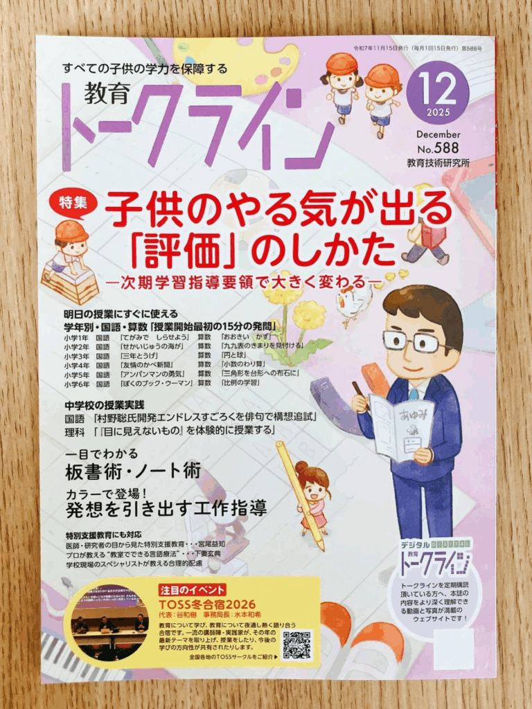 「教育トークライン」2025年12月号 投稿日時: 2025年11月21日 投稿者: 信吉 「教育トークライン」(教育技術研究所)2025年12月号の表紙イラストを描きました。先生のための雑誌です。🏫学期末の通知表どんな一年だったかな?